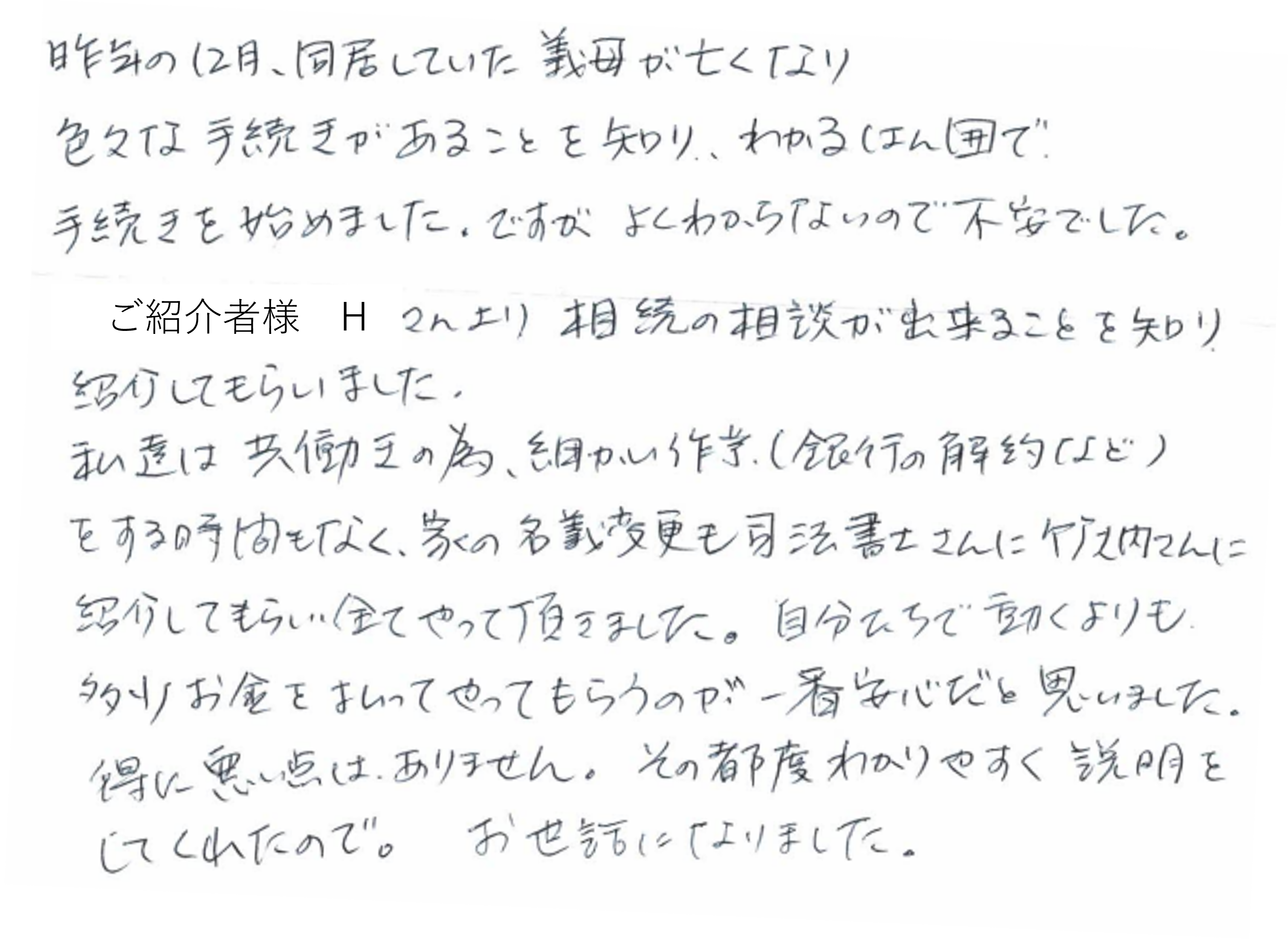 相続手続きをサポートさせて頂いたM様より「お客さまの声」を頂きました